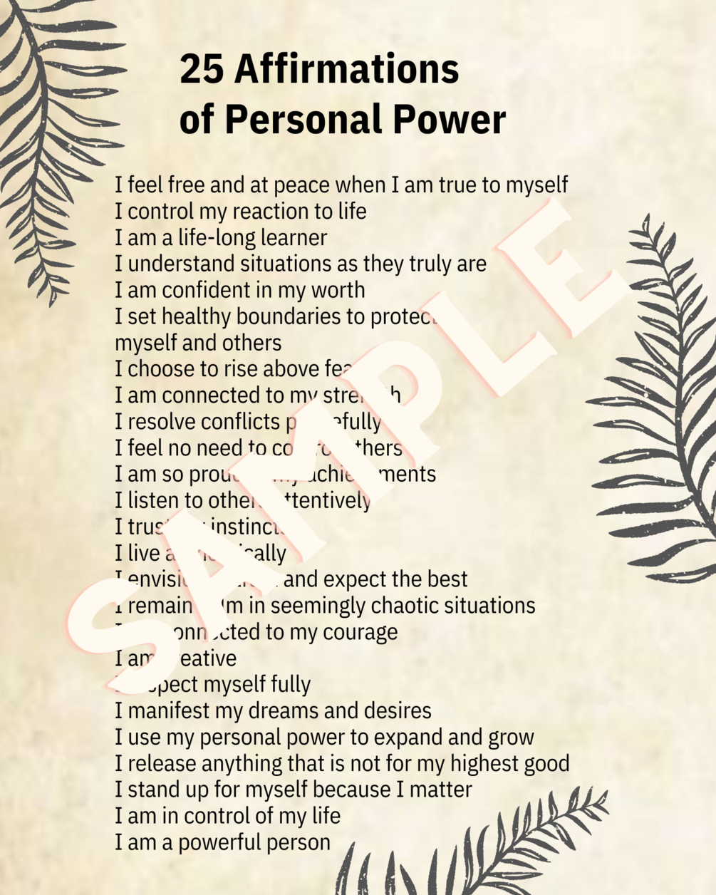 25 Positive Affirmations of Personal Power - Instant Download Printable